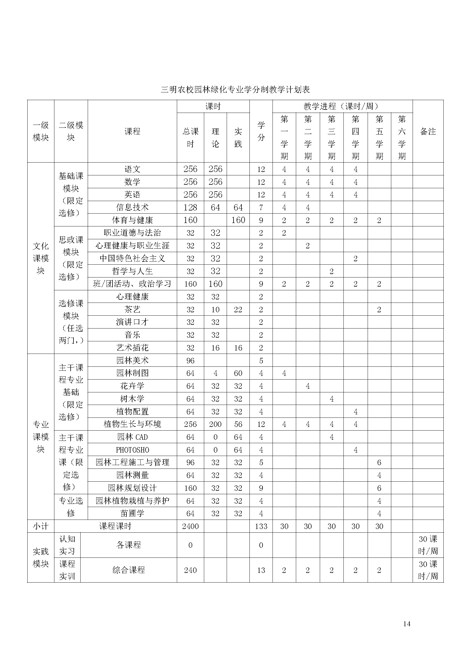 三明市农业学校园林绿化专业人才培养方案(2023)